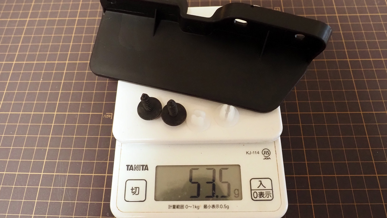 左側1セットの重量は53.5g。左右でも107gなので重量増を気にする必要はなさそうです。