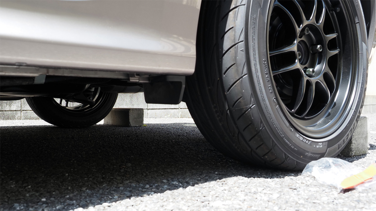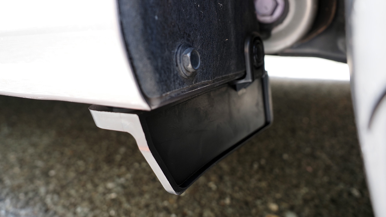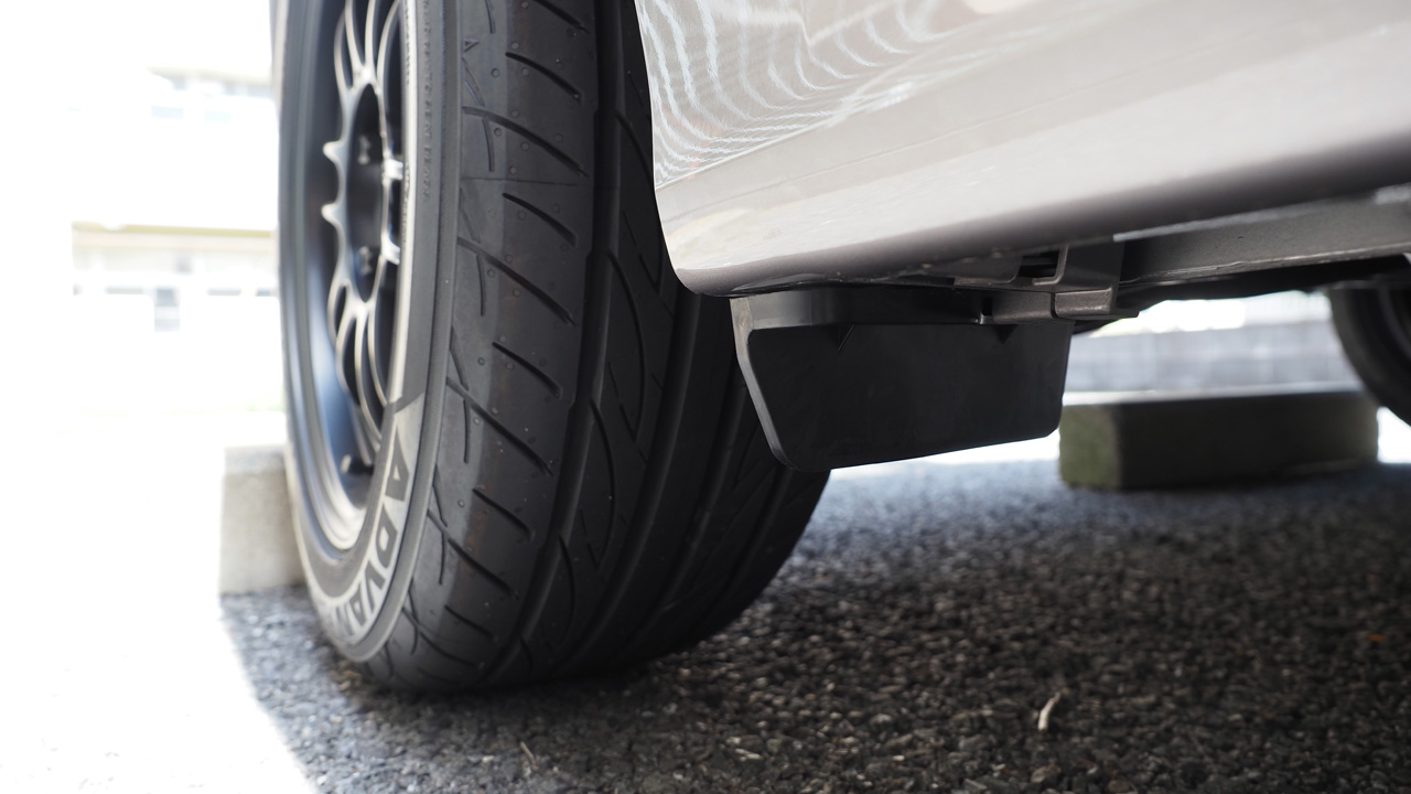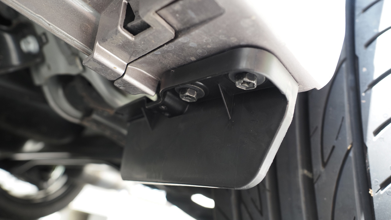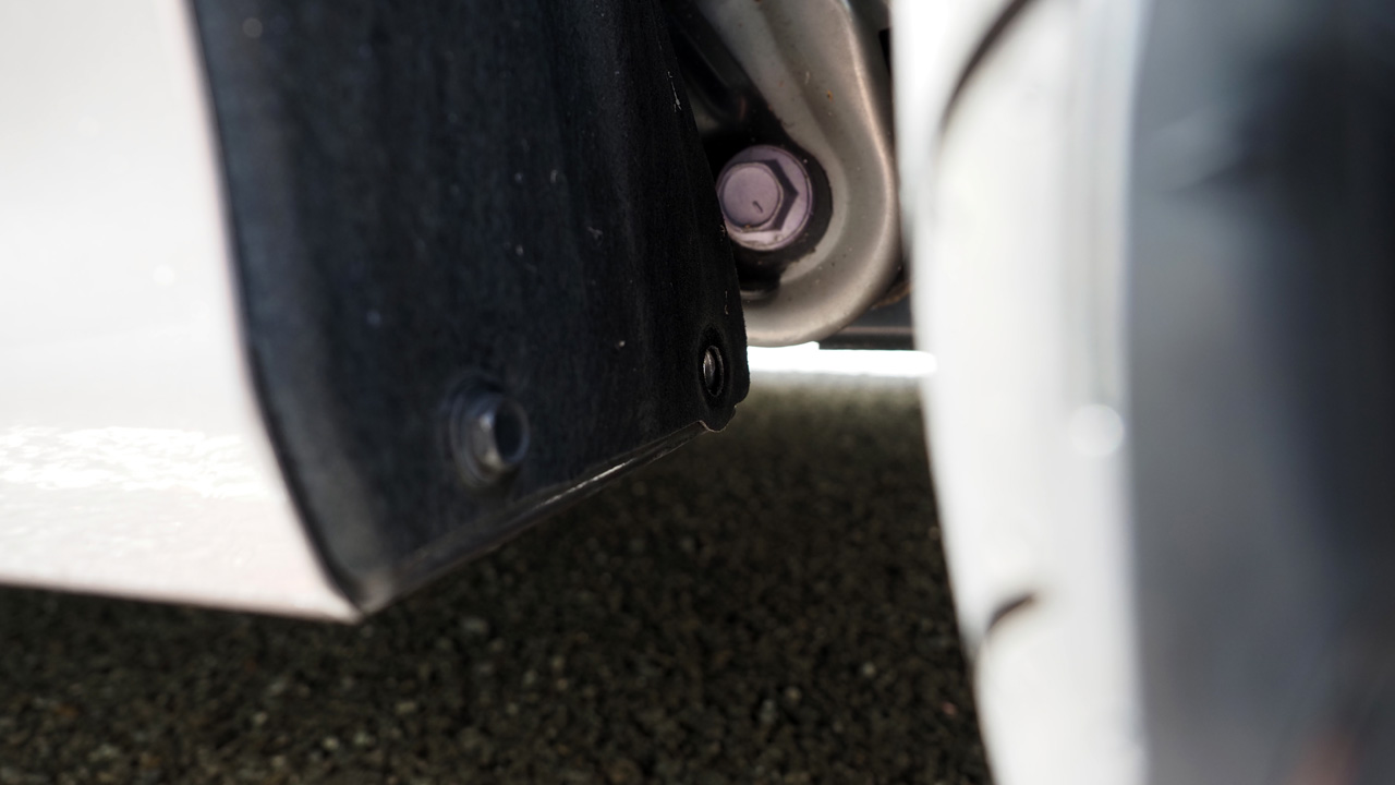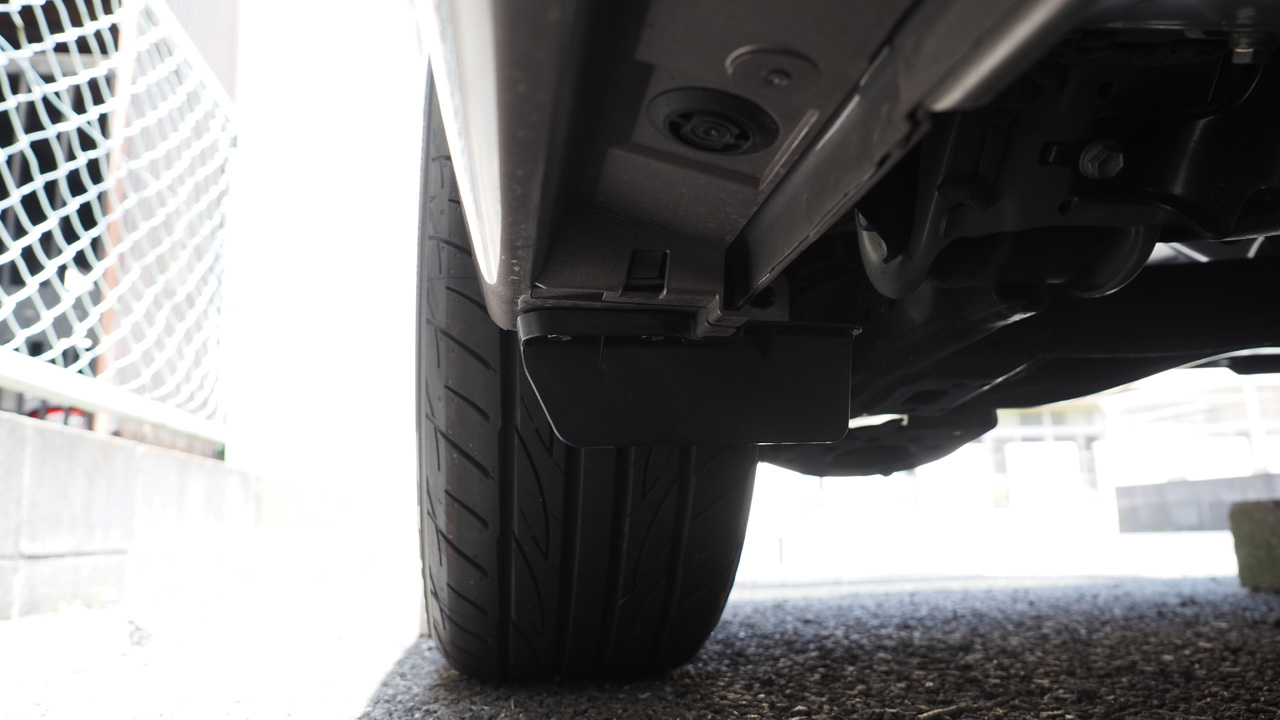 反対側の右側も同様の手順で取り付けます。こう見るとホイールアーチ内側に風が入り込むのを防ぐのが目的っぽいです。